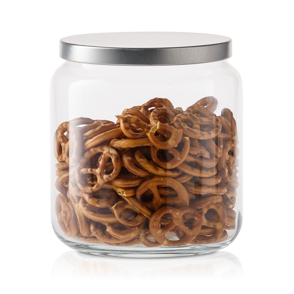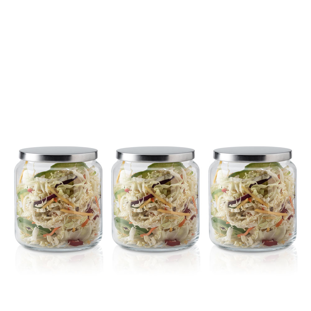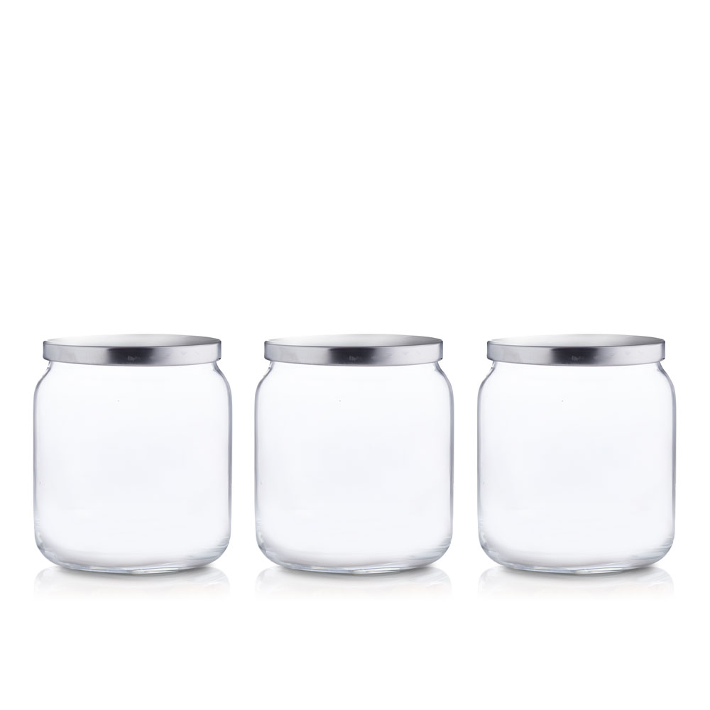 Praktyczny i elegancki zestaw szklanych pojemników do przechowywania z deklem metalowym to doskonałe rozwiązanie do przechowywania różnorodnych produktów spożywczych. Jego uniwersalna, cylindryczna forma sprawia, że pasuje do każdej kuchni, a przezroczyste szkło pozwala na szybkie sprawdzenie zawartości.