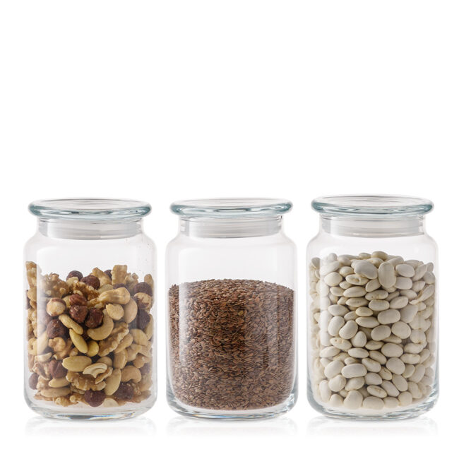 Solidne szklane wieczko z uszczelką zabezpiecza zawartość przed wilgocią i utratą aromatu, zapewniając dłuższą świeżość produktów.