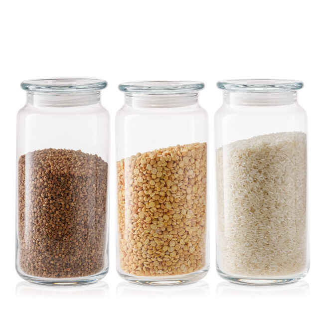 Solidne szklane wieczko z uszczelką zabezpiecza zawartość przed wilgocią i utratą aromatu, zapewniając dłuższą świeżość produktów.