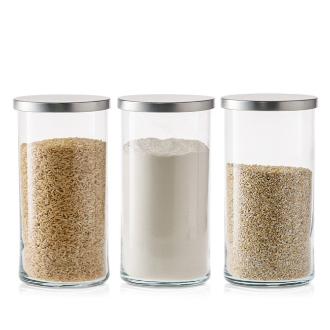 Pojemniki PURE doskonale sprawdzą się do przechowywania makaronu, mąki, cukru, płatków i wielu innych produktów spożywczych. Dostępne w różnych rozmiarach, pozwalają dopasować przestrzeń do własnych potrzeb.