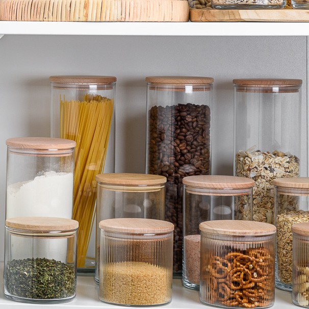 W nowoczesnych aranżacjach kuchni liczy się nie tylko funkcjonalność, ale także wizualna harmonia. Kolekcja PURE to minimalistyczne szklane pojemniki, które doskonale wpisują się w estetykę dobrze zorganizowanej przestrzeni. Ich prosta, cylindryczna forma sprawia, że wyglądają lekko i elegancko, a przezroczyste szkło eksponuje zawartość, dodając wnętrzu subtelnej dekoracyjności.