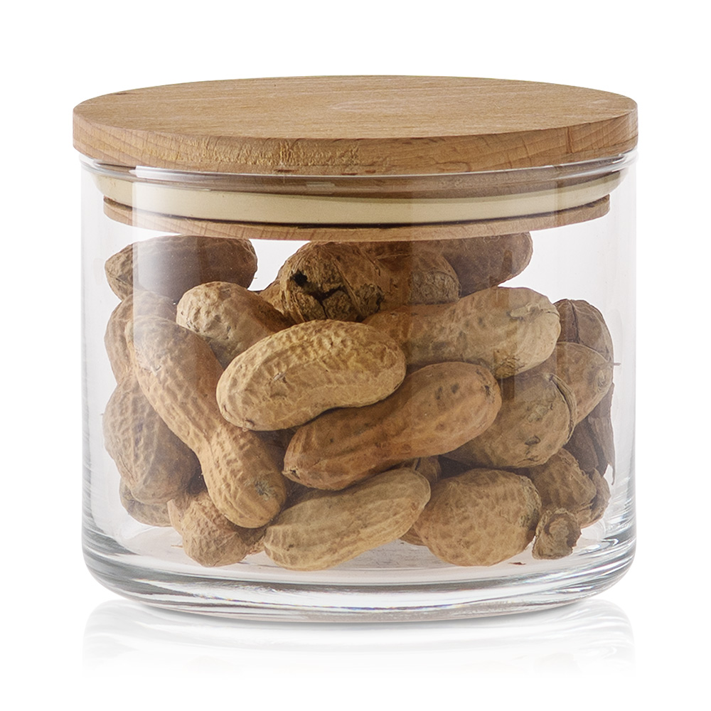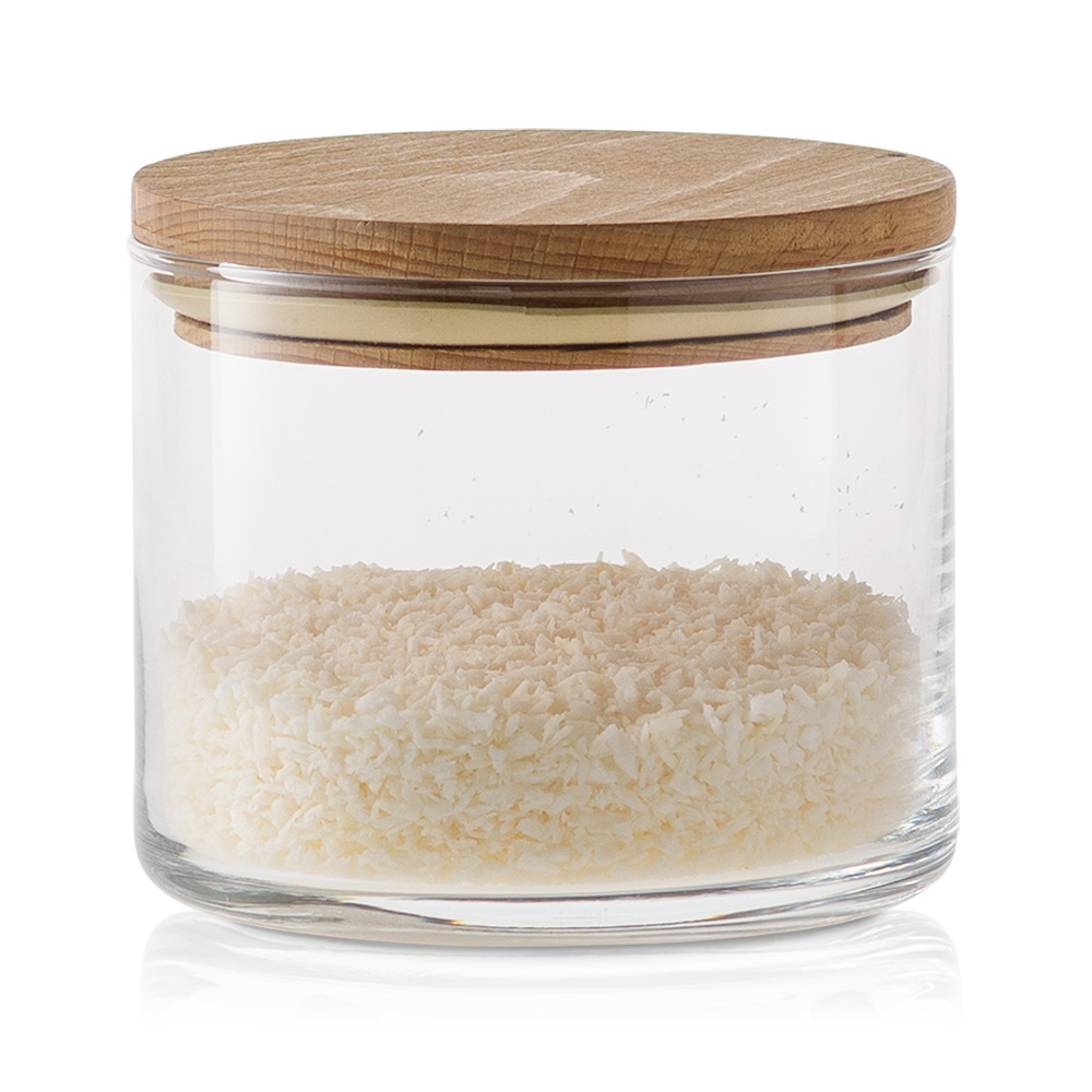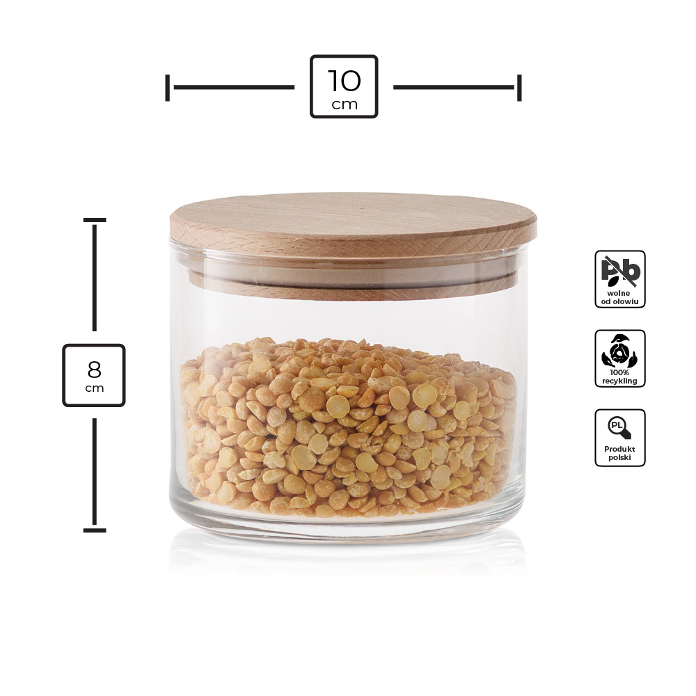 Solidne drewniane wieczko z uszczelką, zabezpiecza zawartość przed wilgocią i utratą aromatu, zapewniając dłuższą świeżość produktów.