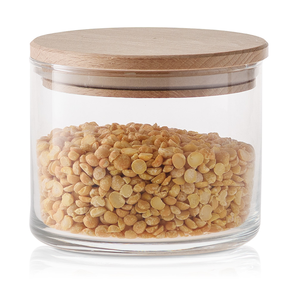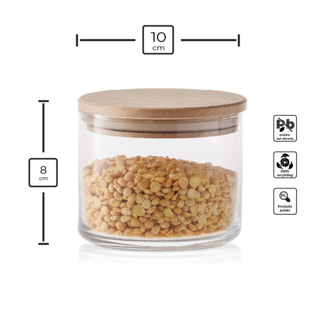 Praktyczny i elegancki zestaw szklanych pojemników do przechowywania z deklem drewnianym to doskonałe rozwiązanie do przechowywania różnorodnych produktów spożywczych. Jego uniwersalna, cylindryczna forma sprawia, że pasuje do każdej kuchni, a przezroczyste szkło pozwala na szybkie sprawdzenie zawartości.