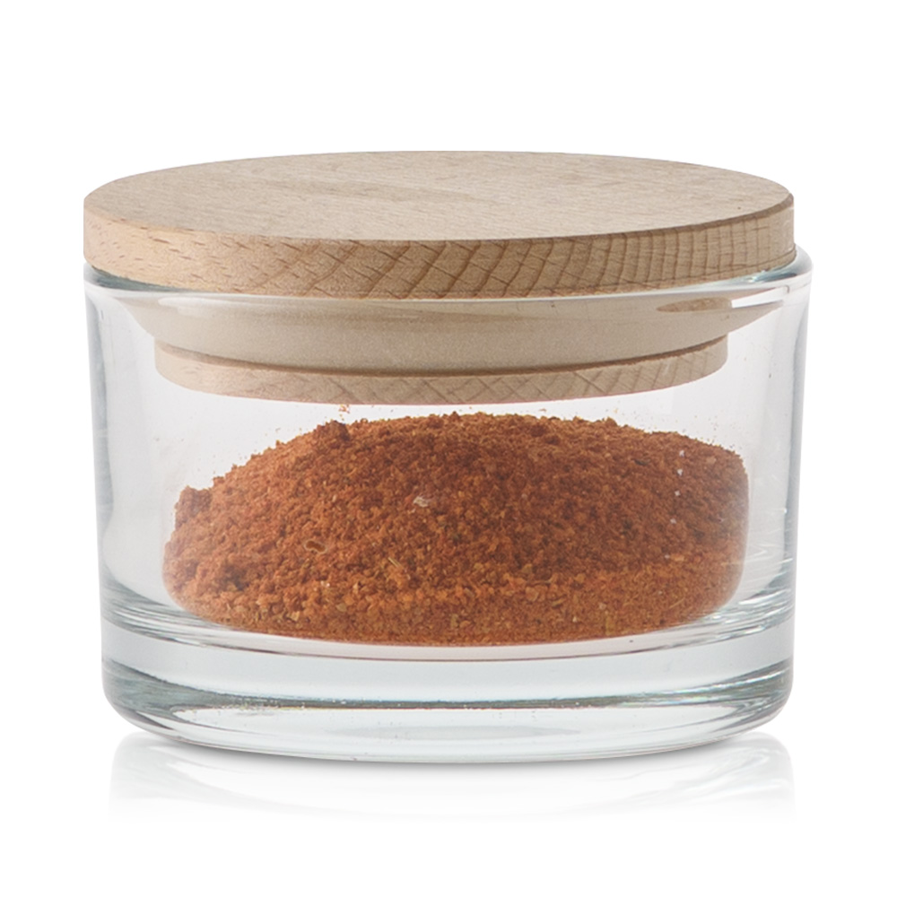 Zestaw pojemników szklanych na przyprawy, nr produktu: 70195 + dekiel drewniany