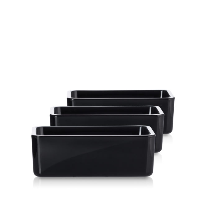 Z przyjemnością prezentujemy Elegancki i Nowoczesny Zestaw Półmisków Szklanych. Zestaw składa się z trzech półmisków, każdy o prostokątnym kształcie, który przyciąga swoją nowoczesną i minimalistyczną estetyką. Dominujący kolor czarny z subtelnym połyskiem nadaje im elegancji i podkreśla wysoką jakość wykonania.