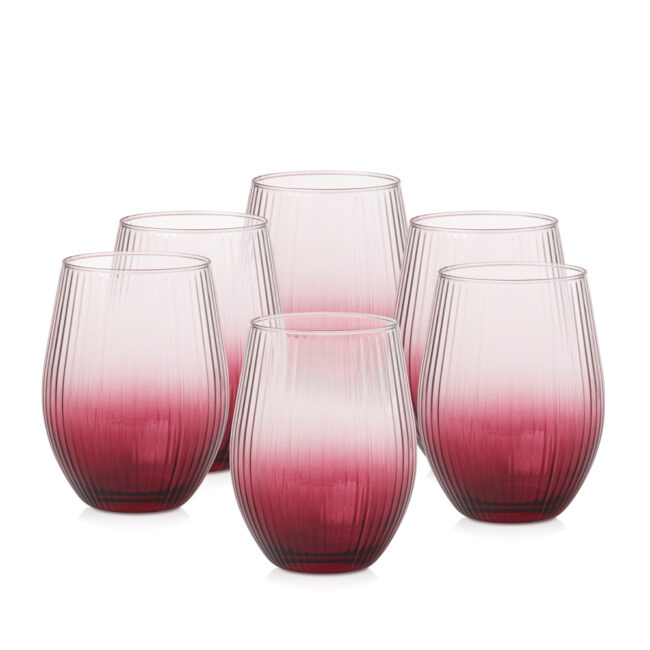 Szklanki ryflowane bordo ombre 500 ml 6 szt