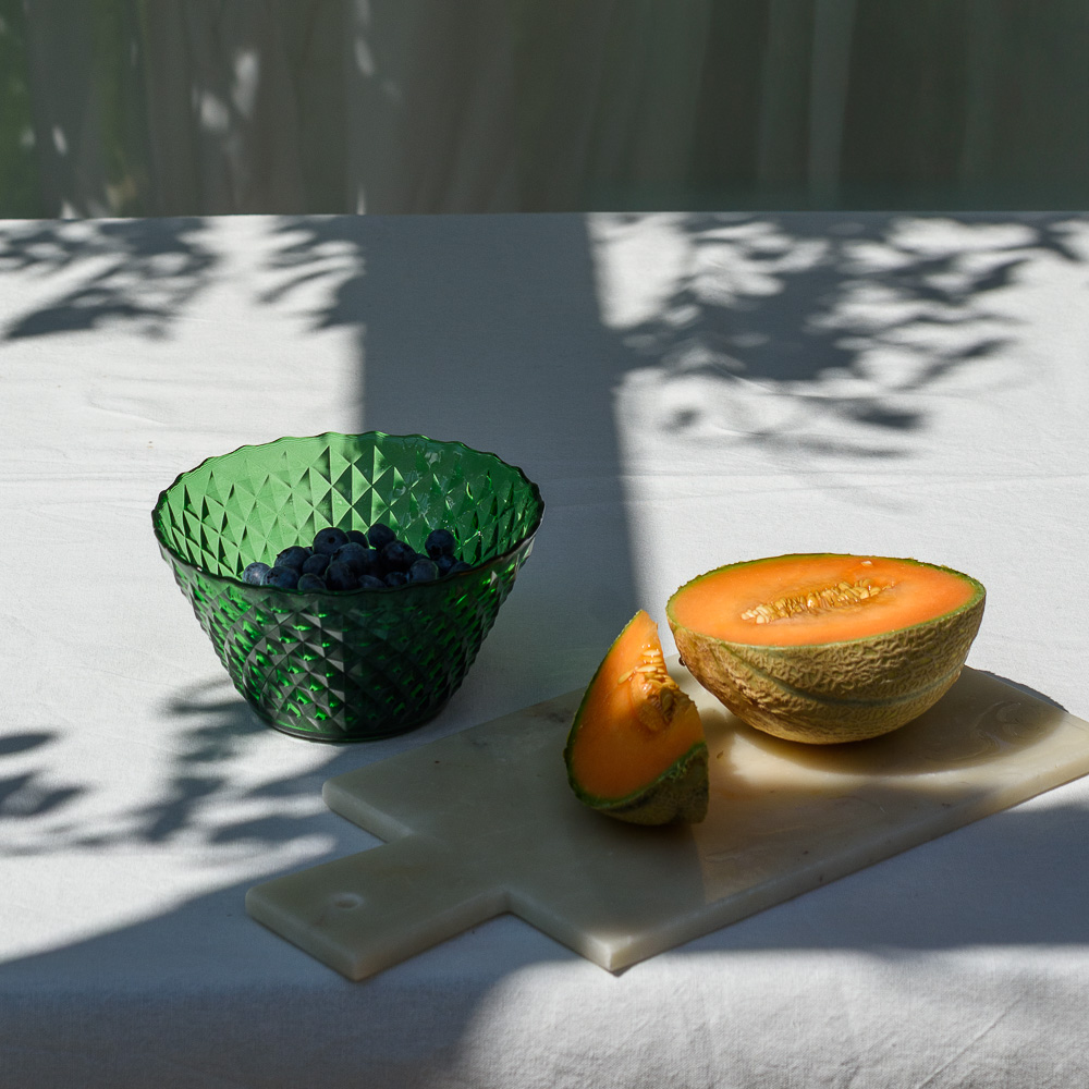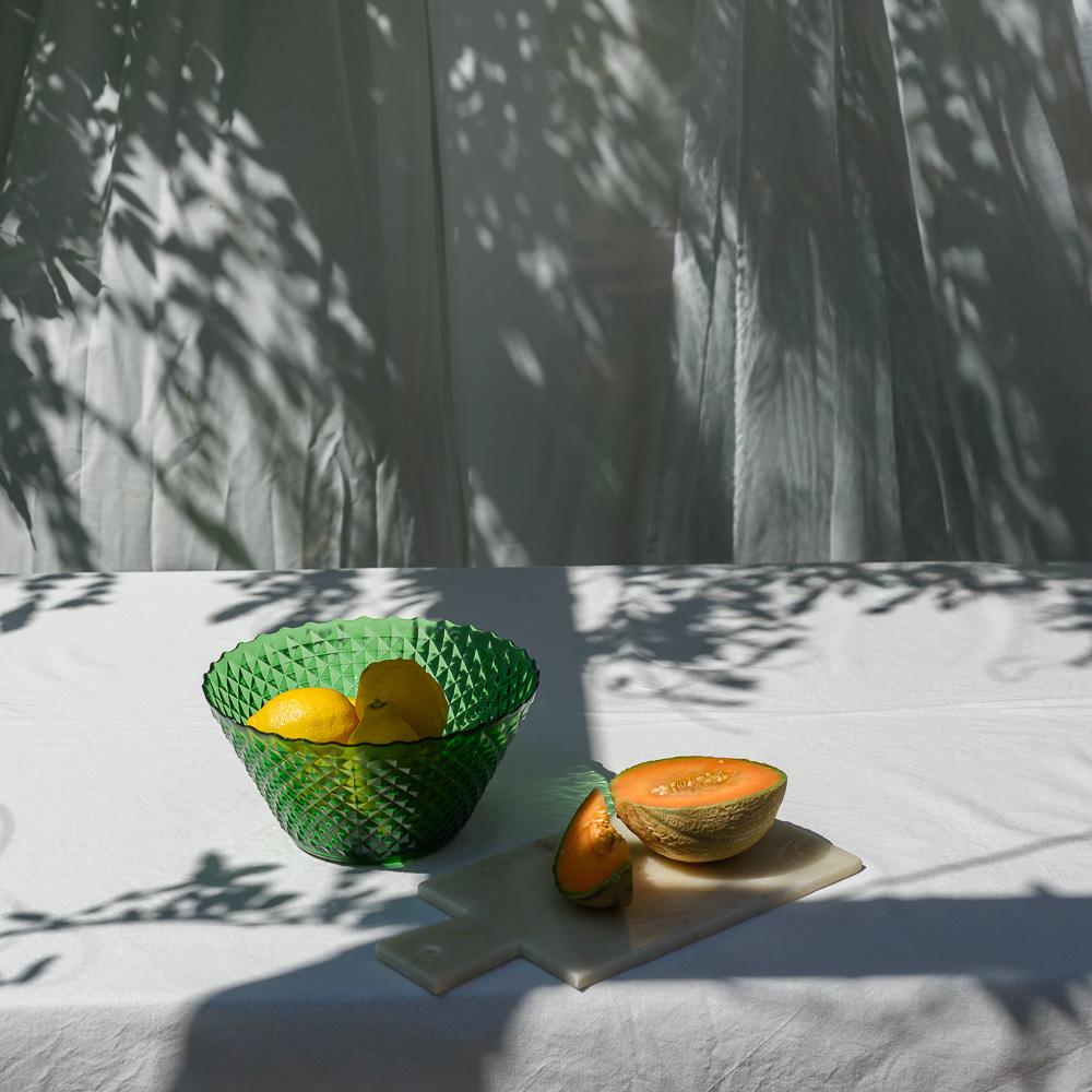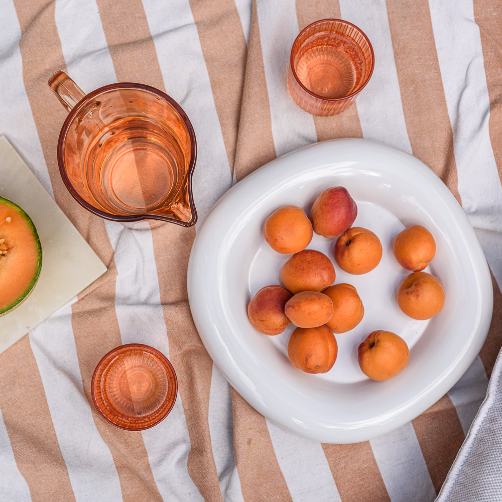 Ta szklanka to drobny, ale wyrazisty detal, który potrafi odmienić całą aranżację stołu. Struktura ryflowanego szkła nadaje jej charakteru i świetnie komponuje się z naturalnymi materiałami – drewnianą tacą, lnianymi serwetkami czy ceramiką. W duecie z dzbankiem tworzy spójny, a zarazem lekko nonszalancki komplet idealny na lato. To idealna propozycja dla tych, którzy szukają funkcjonalności w dekoracyjnej formie.