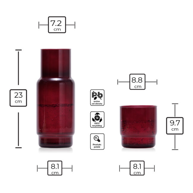 Zestaw CRISTAL COLOR bordo karafka 1 l + 6 szklanek niskich 465 ml