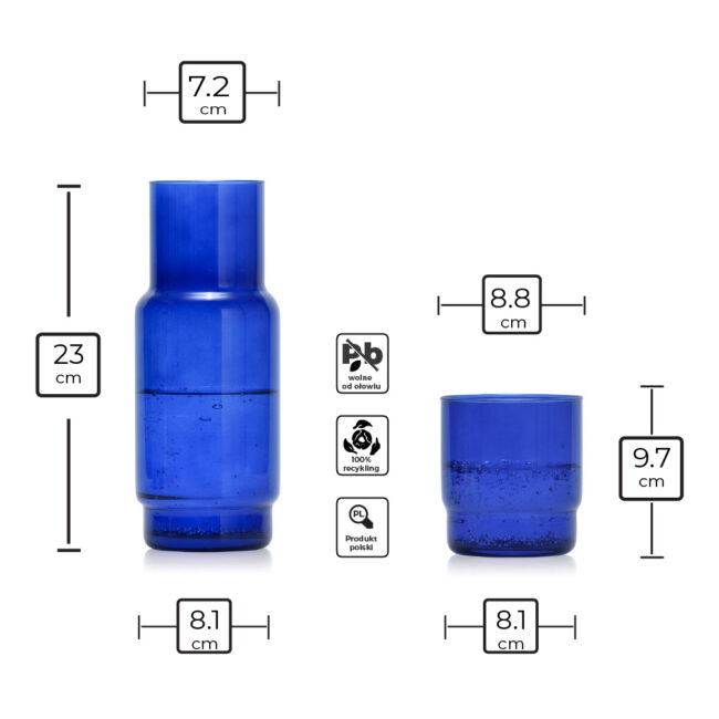 Komplet składa się z karafki oraz 6 niskich szklanek, tworząc harmonijną całość idealną zarówno do codziennego użytkowania, jak i na wyjątkowe okazje.