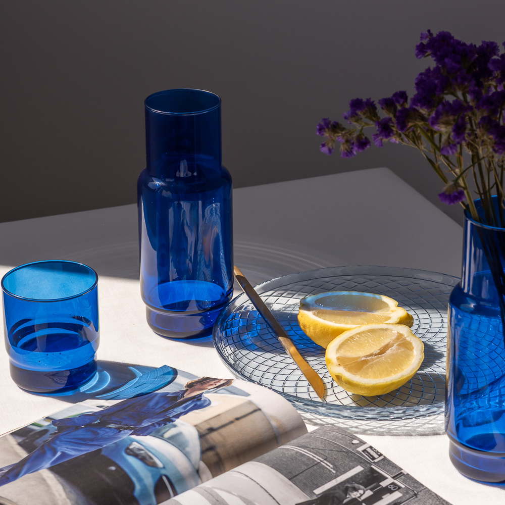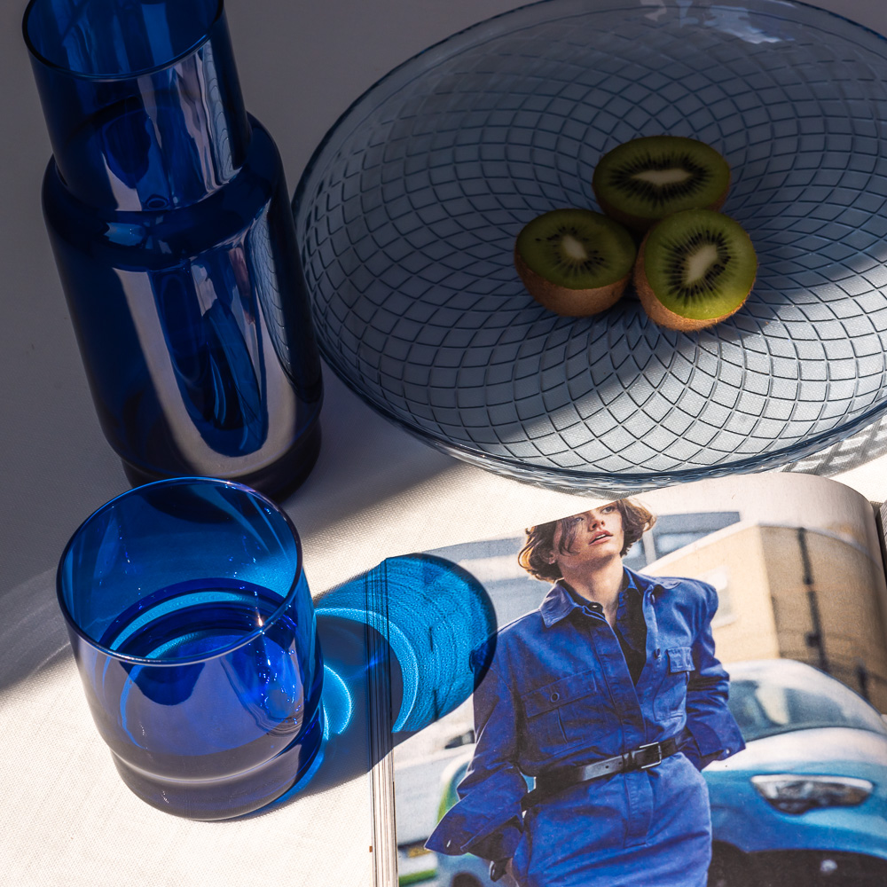 Granatowa odsłona CRISTAL COLOR to najbardziej elegancka i wyrazista wersja kolekcji. Głęboki kolor szkła wprowadza na stół luksusowy, nowoczesny klimat, szczególnie pięknie prezentując się przy wieczornym oświetleniu.