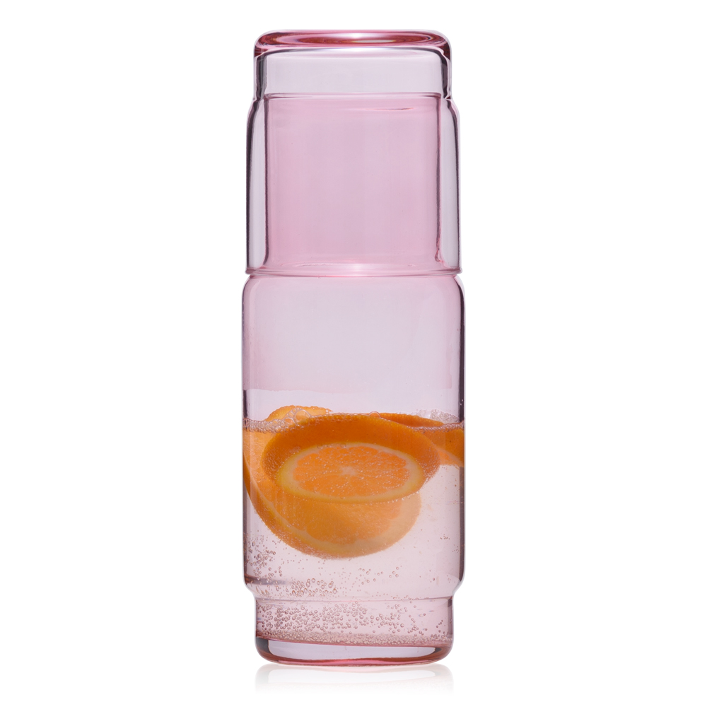 Zestaw CRISTAL COLOR róż karafka 1 l + 6 szklanek niskich 465 ml