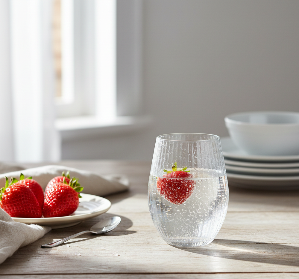 Szklanka idealnie nadaje się do picia soku lub wody.