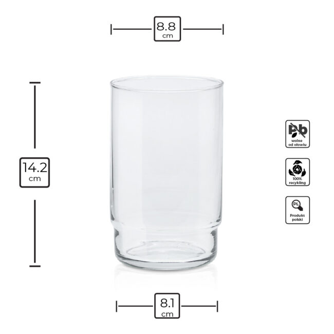 Gładka powierzchnia dodaje szklance uniwersalnej elegancji i ponadczasowego charakteru