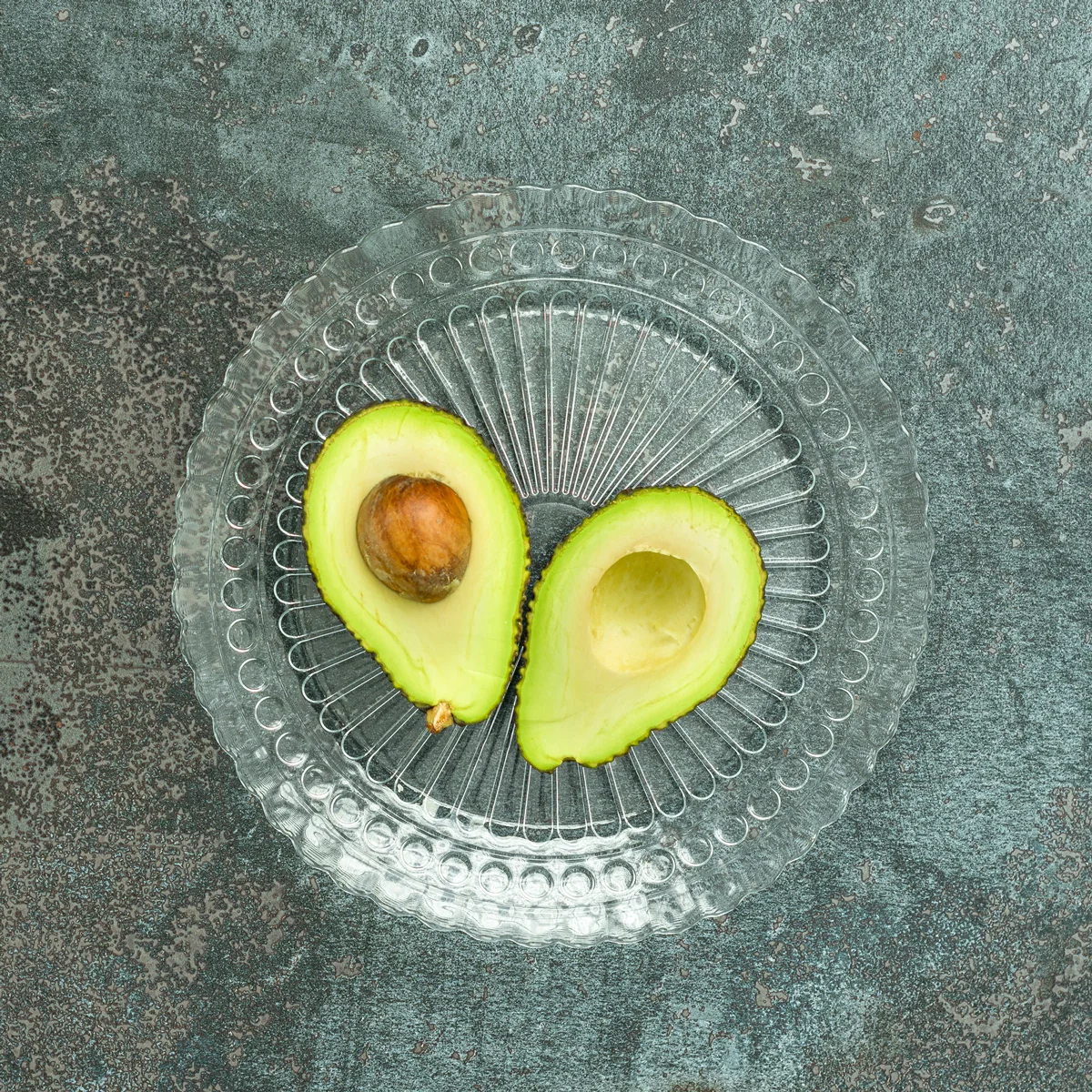 Elegancki, bezbarwny talerz obiadowy z dekoracyjnym wzorem.